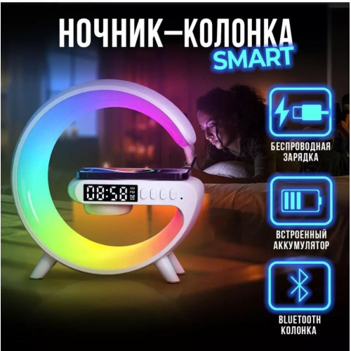 Ночник (беспроводная зарядка и Bluetooth колонка)